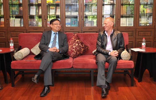 正在上海参加2014(第七届)中国新西兰电影节的新西兰奥克兰电影协会主席兼会长Pete、首映影片《永恒》的导演Alex、新西兰太平洋文化艺术交流中心主席和志耘等一行4人于4月25日访问太阳集团122cc。