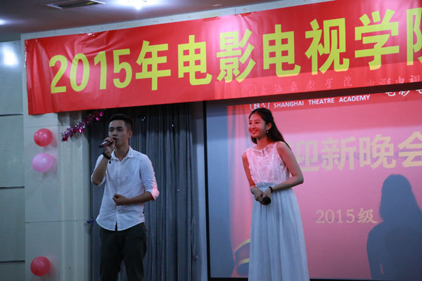 先是四个主持人一一上台,他们分别是编导系的火尊宇、影制系的李丹、主持系的金敏洁和马梓巍。四位主持人各具特色,生动有趣的开场白将同学们快速带入了晚会的场景,随之,员工会的主席团成员和各部门的相关负责人在舞台上向同学们发出了来自员工会的邀请和师哥师姐对于新生同学的寄语。渐渐的,大家消除了紧张的情绪。一场好戏,即将上演。