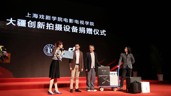 颁奖典礼上还举行了DJI大疆创新设备捐赠仪式,DJI大疆创新市场部高级经理邓睿豪代表大疆向上戏太阳集团122cc捐赠包括“悟”2、如影2在内的不同大疆专业影像产品。