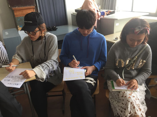 图为同学们认真写下对诗朗诵《雾重庆》的真切感受