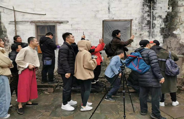 图为学员们赴江西省婺源县进行“VR+非遗、共创、共享”为主题影像创作期间留影