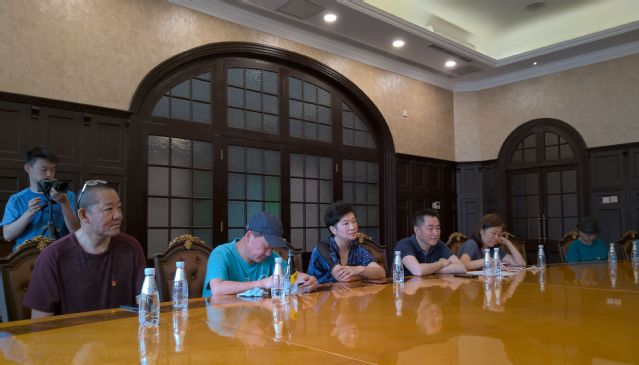 图为电影电视公司党支部书记魏东晓、副书记王春云聆听讲解