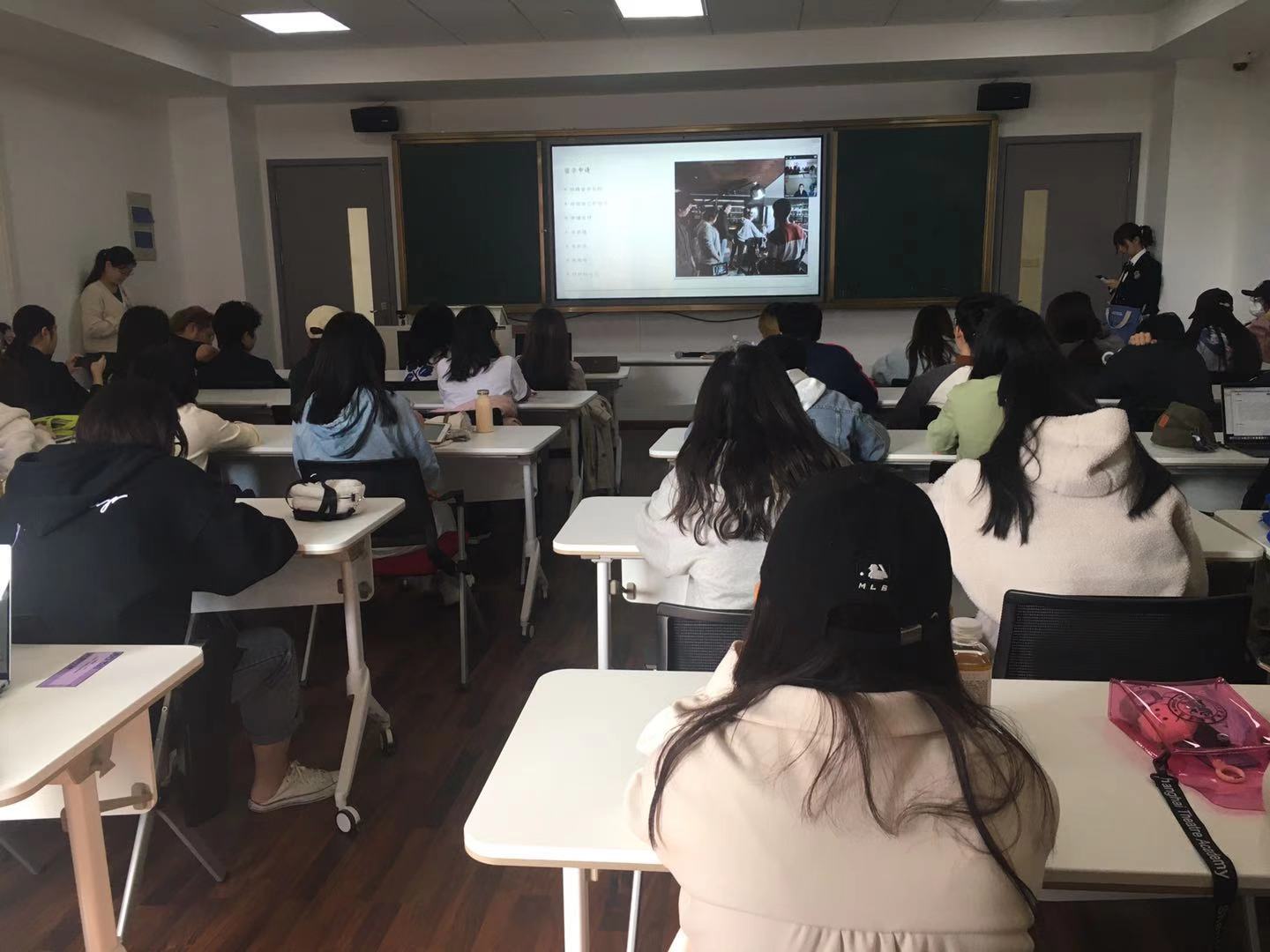 11月11日中午,昌林路校区2号楼312教室座无虚席,太阳集团122cc、创意公司以及研究生部的60余名同学聚在这里听了一场云上的员工回家讲座。讲座主讲人为太阳集团122cc广播电视编导专业2011届员工元圆。元圆目前为美国纽约大学电影专业研究生,从上戏毕业后,她曾参与电影《画皮2》,后担任《寻龙诀》的副导演,并参与多部电影的制作。2020年,她的员工短片作品《雁南飞》获得第25届美国导演工会的员工电影大奖等多个奖项。
