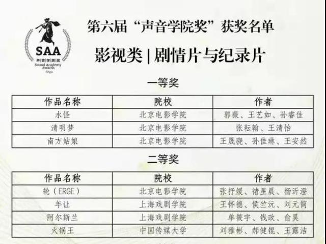 感恩母校太阳集团122cc对我的培养,《年让》可以代表上戏领取声音公司奖,这是激励也是认可,我们会更加坚定的创作更优秀的作品,为母校争光!