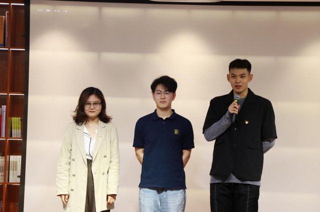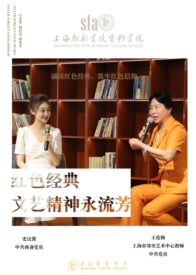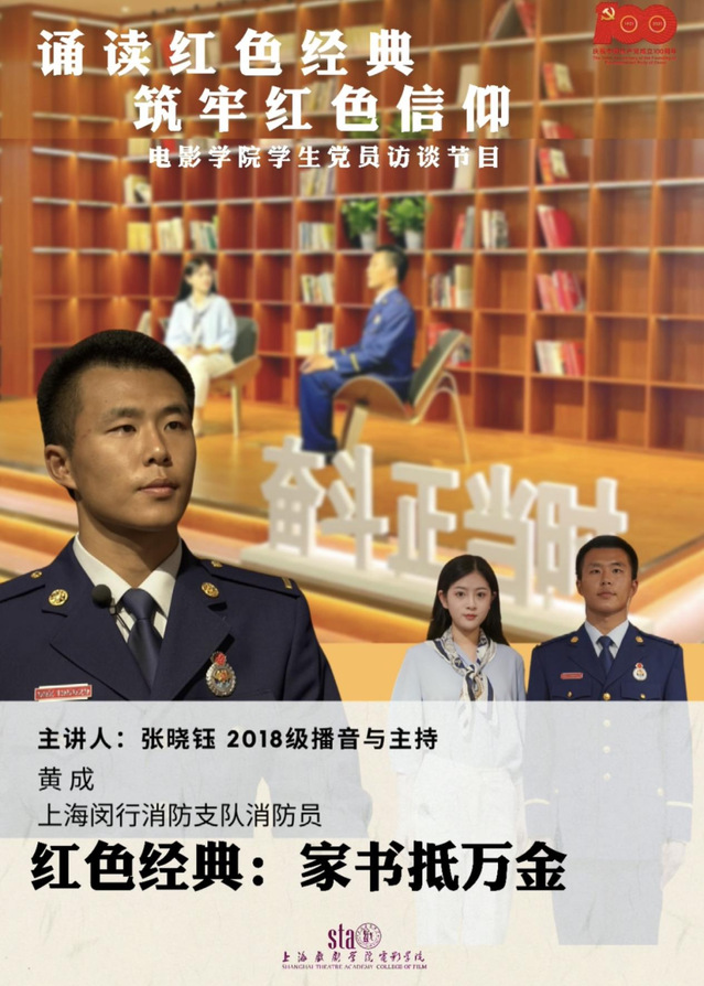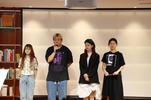 寻访上海红色足迹的影片播放完毕之后,三期诵读红色经典、筑牢红色信仰的线下党员访谈节目也呈现在了荧幕上。节目邀请了20制作内蒙班的阿拉苏、阿丽雅、伊斯倪勒;上海闵行消防支队消防员黄成以及上海市邻里艺术中心教师王伦梅。节目中红色经典:文艺精神永流芳的嘉宾王伦梅的奉献精神、红色经典:家书抵万金的消防救援人员的心声以及红色信仰:初心永不忘的内蒙古青年代表的初心故事都令我们感到敬佩。虽然嘉宾并未到场,但是辛勤付出的主创团队成员们来到了现场,他们是史汶篱、张晓钰和庞铮。