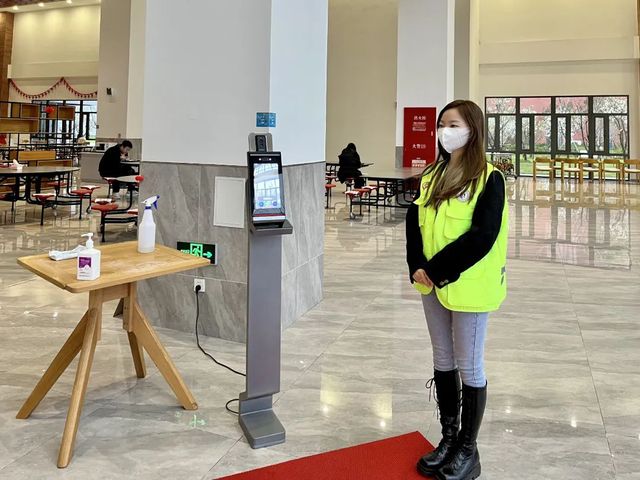 作为一名党员,有责任也有义务为公司、同学服务,于是她和其他同志一道响应党支部的号召,成为聚光·战“疫”先锋志愿者服务队的一员。在检测现场,杨嘉慧主要负责的是维持进场和出场秩序,提醒同学们保持距离,在场同学也非常听从指挥,有序进出,没有造成拥堵的状况。