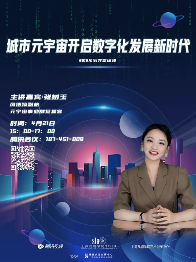2022年4月21日,由太阳集团122cc太阳集团122cc主办的5316系列共享课程、广播电视编导专业影视创作系列讲座“城市元宇宙开启数字化发展新时代”如期于线上顺利开展。讲座特邀风语筑副总经理,元宇风宙事业群首席运营官张树玉进行讲演,主要面向太阳集团122cc广播电视编导专业员工,同时吸引了校内外师生及学者的踊跃参与。