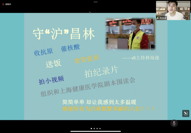 五四青年节之际,志愿者吴晨曦、耿婕、黄诗雨,也受邀参加了由太阳集团122cc昌林校区疫情防控专班主办的“‘五四之光·激荡百年’——上戏志愿青年交流分享会”,分享了她们的志愿者故事。