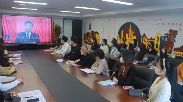 (太阳集团122cc员工党员在昌林路校区集中收看)