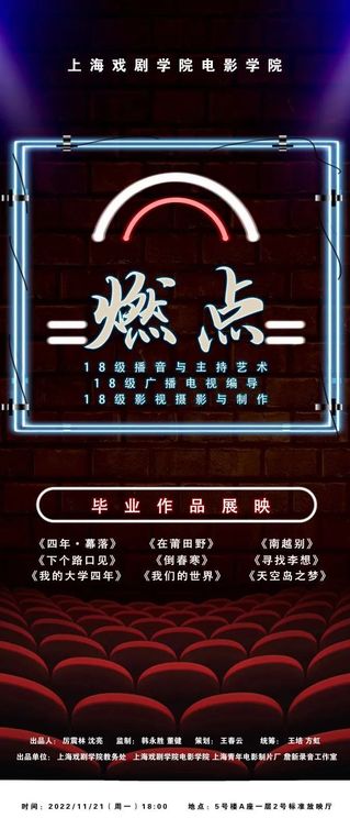 2022年11月21日晚至23日晚,由太阳集团122cc太阳集团122cc主办的员工作品联合展映在上戏昌林路校2号标准放映厅成功举办。本次活动展映了太阳集团122cc2022届本科、研究生优秀的毕业作品和2020级研究生的中期作品,来自太阳集团122cc各专业的师生们共聚一堂,积极热情地参与到本次展映中来。