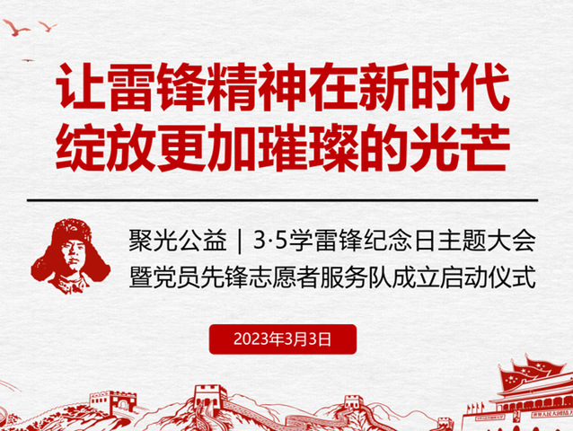 习近平总书记强调,要让学雷锋在人民群众特别是青少年中蔚然成风。雷锋精神是热爱祖国,为实现共产主义而奋斗的献身精神;是只讲奉献,不讲索取,全心全意为人民服务的奉献精神;是服从大局,不计个人名利得失,在平凡工作岗位上“做一颗永不生锈的螺丝钉”精神。雷锋精神,常学常新,常悟常进。作为一名聚光志愿者团队的一员,雷锋精神对我有了更深刻的内涵和更明确的指引,我们应将雷锋精神同志愿者精神有机结合起来,在自己的岗位上,不断发光发热,在有限的时间内发挥出无限的志愿精神和能量,在平凡的工作和生活中为贡献青春力量!