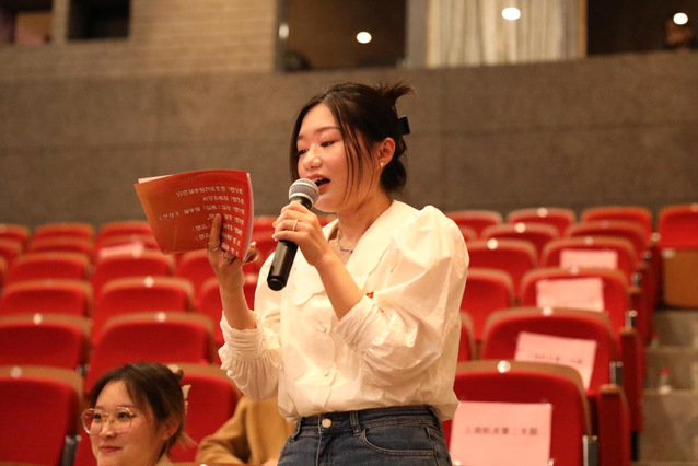 教师党员费咏老师使用“路”与“光”两个关键词表达了信仰的力量;教师党员张大鹏将陈望道撰写的《修辞学发凡》与个人研究的学术课题相联系;教师党员包磊通过三个“没想到”,讲述了电影及主创团队带给自己的惊喜收获。