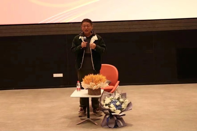 在场师生一同观摩电影《望道》后,正在全国路演的侯咏教授专程回来为大家介绍了本片拍摄的心路历程。他表示,这部电影缘起于上影的邀请,创作难度较大。通过深入研究中国共产党党史、复旦大学党史等资料,逐渐构建起了有情节、有逻辑的故事,经过三年打磨,最终与大家见面。侯咏教授希望自己能够讲好革命的故事,也希望大家能通过电影,看到那个时期的革命者们为中国革命付出的努力、热情和生命。片中人物的纯粹和义无反顾深深地打动着他,他始终报以崇敬的态度在其中创作。