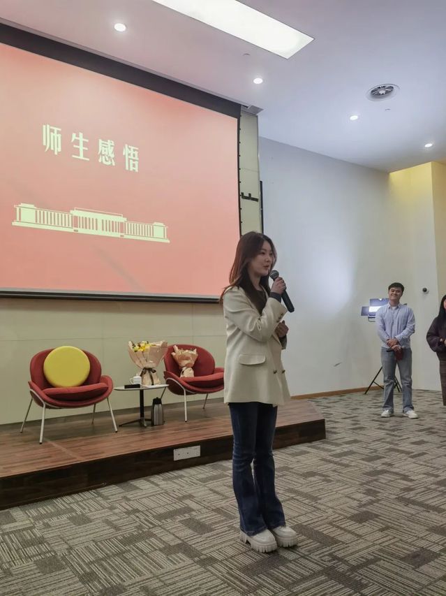 第三乐章“薪火相传“的环节,教师支部书记王琦老师、总支委员沙扬老师以及员工支部的昨天刚刚成为预备党员的邹方沁同学、作曲系的杨越涵同学和陈梓涵同学,都激动地分享了自己对”红色交响“的深刻感受。
