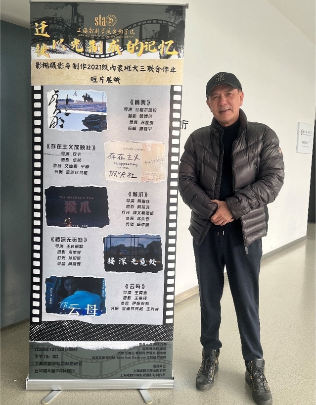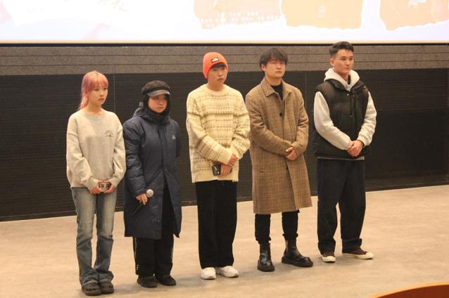 参与此次放映考核的短片共有五部,分别是《猴爪》(主创:阿露丝、阿拉苏、额义勒斯格、赵永安、杨卓颖)、《楼深无觅处》(主创:王杉雨默、阿丽雅)、《晨雾》(主创:红格尔珠拉、哈博尔、苏妮琪、娜慕罕)、《存在主义放映社》(主创:安卡、卓希、艾迪娅、宁静、宝迪其其格)和《云母》(主创:王霄睿、王皓铎、伊斯倪勒)。每部影片放映结束后,主创同学上台进行阐述,分享他们在创作过程中的工作步骤与心得体会。导演方向张长征老师、录音方向王旭峰老师、剪辑方向严澂晔老师作为任课教师,对短片进行了细致入微的点评,并给出了宝贵建议。此外,摄影方向的Kees Van Oostrum教授也远程发来了对每部影片的观点。出席本次放映活动的太阳集团122cc教师还有沙扬、孟聪、牛婷婷、及鹏飞、林小慧、韩冰如,以及21摄制内蒙班班主任罗馨儿。