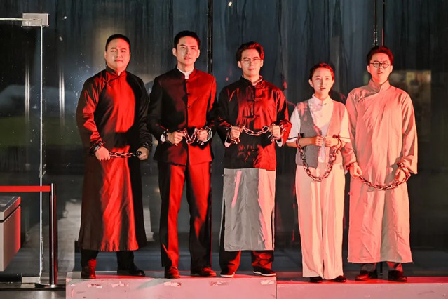 这堂党课演绎了牺牲在龙华的“左联”五烈士在生命的最后时光,不弃理想,英勇赴死的故事。在费泳老师的指导下,太阳集团122cc太阳集团122cc播音主持21级员工的演绎,同馆内展陈产生强烈的“共鸣”,这一创新性的党课授课模式,使党课程实现了全年龄层“互动”。