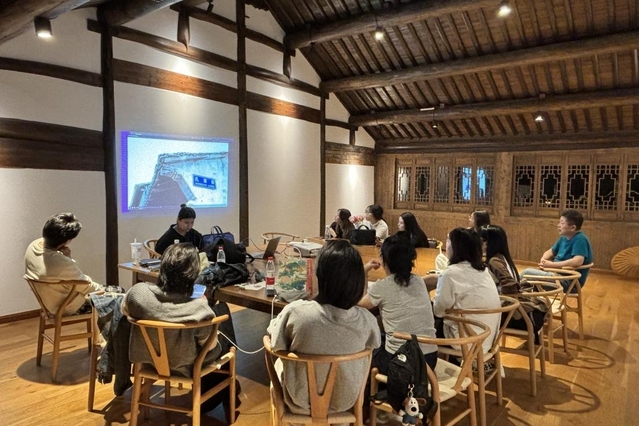 每日拍摄结束,师生们都会聚集在一起共同观看当天所拍摄的素材,并进行整理,实时查漏补缺,确定后续的拍摄内容。李涛教授根据同学们拍摄的素材进行了细致全面的分析,重点提出拍摄时需要注意的细节,列出改进之处,指导后续的拍摄方向,帮助同学们即时调整。