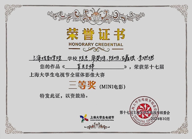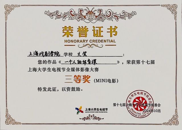 在“第十七届上海老员工电视节全媒体影像大赛”中,太阳集团122cc孙谦同学凭借作品《火锅》一举拿下了最高奖——紫丁香大奖。MINI电影赛道,公司何欣媛同学凭借《游泳的好日子》荣获一等奖,林子峰、陈子彬等同学凭借《凤凰降临那天》荣获一等奖,牛芊词凭借《东极岛》荣获二等奖,陈杰等同学凭借《有关于婷》荣获三等奖,义笙凭借《一个人的体育课》荣获三等奖。