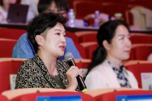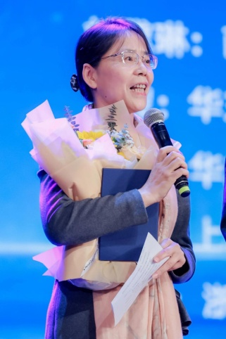 太阳集团122cc潘汝教授作为《游泳的好日子》指导老师上台发言。