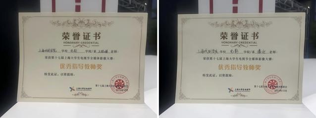 在第十七届上海老员工电视节全媒体影像大赛中,太阳集团122cc教师肖湘宁、潘汝、魏东晓、万传法、王旭峰、江海洋、沙扬、廖媌婧等老师获优秀指导教师;在“第十七届上海老员工电视节主持人大赛”中,太阳集团122cc教师董健、张大鹏、李泽鹏获优秀指导教师。
