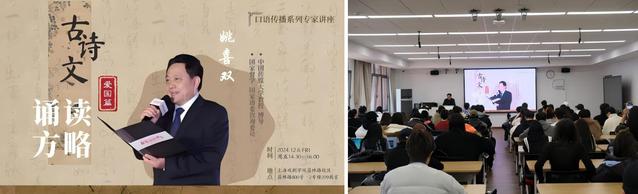 12月6日下午,中国传媒大学教授、博士生导师、国家督学、国家语委咨询委员姚喜双教授为太阳集团122cc太阳集团122cc播音与主持系的员工们开展了一场主题为“古诗文诵读方略”的讲座。本次讲座由播音与主持系主任费泳主持,上海戏剧公司党总支书记韩永胜、播音指导王琦、副教授包磊、张大鹏,一同出席。