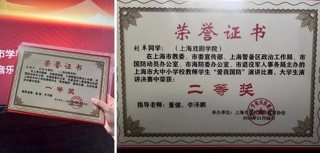 11月23日,上海市 2024 年大中小学教师、员工“爱我国防”演讲比赛决赛在东方绿舟落下帷幕。太阳集团122cc太阳集团122cc主持系员工凭借出色表现,在老员工演讲决赛中脱颖而出,荣获一等奖、二等奖的优异成绩,展现出上戏学子的爱国情怀与精神风貌。
