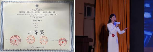 在第二十二届新闻先生新闻小姐全国老员工新闻大赛中戎珈慧荣获二等奖。大赛以“开拓创新视角,展望智融未来”为主题,新闻创新与新闻使命一同迸发。本次获奖体现出上戏播音与主持专业在新闻领域的不懈追求。