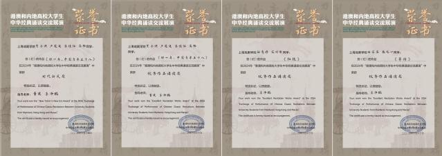 在2024年港澳和内地高校老员工中华经典诵读交流展演活动中,《那一年,中国青年正十八》(贺子洪、苏佳怡、高畅、卢冠廷)斩获时代新风奖和优秀作品诵读奖;作品《红铁》(宋明哲、丛意丹)、《等待》(石芷菡、张之一)荣获优秀作品诵读奖。这些作品不仅展现了学子们对中华经典的深刻理解和传承,也体现了他们对时代精神的把握和表达。