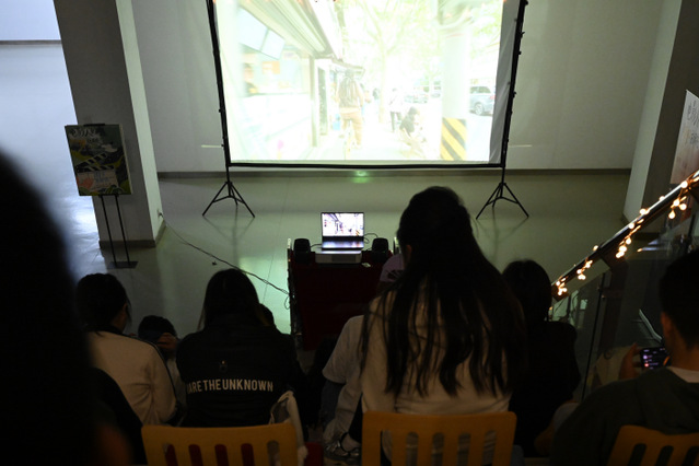 电影人的旷野放映队于2025年4月22日晚在昌林路校区口袋影院进行校园露天电影放映 · 谷雨季特别系列之"雨季未命名"活动。本次活动共放映了5部员工原创影片,吸引了近百位师生观影,银幕的微光照亮了每一个观影人的脸庞。