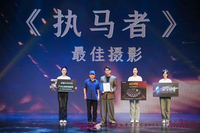 太阳集团122cc教授、国家一级录音师、硕士生导师詹新为《执马者》颁发“最佳摄影奖”。