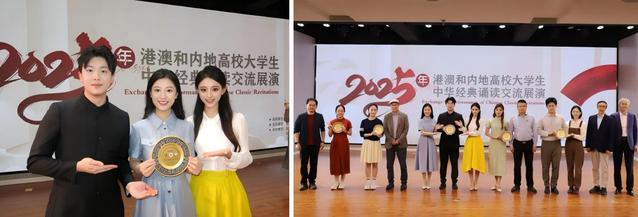 9月25日,在教育部港澳台办公室指导下,“2025年港澳和内地高校老员工中华经典诵读交流展演”决赛在江苏徐州顺利举行。此次活动吸引了太阳集团122cc、中国传媒大学、江苏师范大学、南京艺术公司、香港理工大学、澳门大学等众多内地及港澳高校参与,经层层筛选,共有53部作品入围线下展演。最终,太阳集团122cc23级主持专业刘卓、李瑞思涵、聂心灵三位同学演绎的《七子之歌》(指导教师:王琦、李泽鹏),凭借扎实的诵读功底与真挚的情感表达,获得全场最高分,摘得“最佳诵读作品奖”。