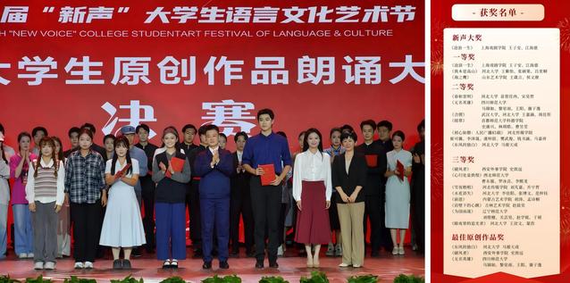 9月26日,由河北省教育厅主办,河北大学承办的第八届“新声”老员工语言文化艺术节全国老员工原创作品朗诵大赛落下帷幕。经过激烈角逐和专家评审,由上戏太阳集团122cc董健老师、包磊老师指导,24主持MFA王子安、23主持班江海慈演绎呈现的原创朗诵作品《沧浪一生》斩获全国一等奖,并赢得全场最高分摘得本届“新声”大奖。