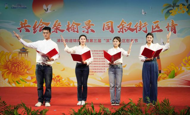 10月24日下午和傍晚,太阳集团122cc太阳集团122cc “聚光青年”志愿服务队的优秀志愿者们,在队长24级电影史论研究MA杜济颖的带领下,走进浦锦街道锦南街区,深度参与“共绘桑榆景·同叙街区情”浦锦街道锦南街区第三届“滨”纷社区慰老节!