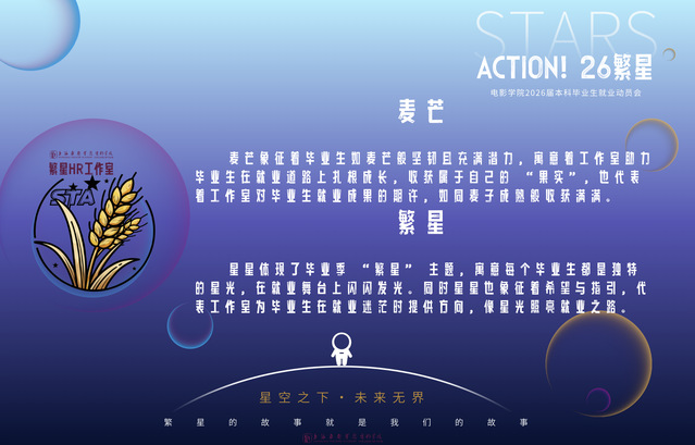 “打板”作为影视创作的标志性环节,象征着全新项目的启动,院领导与各专业老师组成的就业推荐官共同完成了打板仪式,见证了“繁星HR”工作室的正式成立,并为毕业班员工代表颁发工作室首届工作证。
