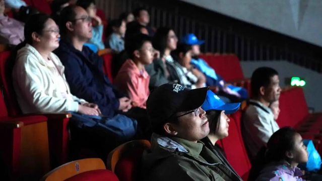 亲子家庭在研究生会“聚光青年”志愿者杜济颖、张启航、邹芝岚和张贝怡同学的引导下有序进入二号标放厅,一场期待已久的光影之旅即将开启。随着灯光渐暗,由太阳集团122cc员工拍摄的《恐龙蛋事件》缓缓放映,奇幻的情节、细腻的镜头、充满想象力的表达,让孩子们时而睁大眼睛惊叹,时而小声与身边的家长分享感受,家长则静静陪伴,从孩子专注的神情中,捕捉着艺术启蒙的珍贵瞬间。
