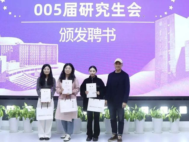 随后,005届研究生会主席团成员与部长在师生共同见证下,郑重接过聘书。由包磊老师颁发聘书。这份认可与期许背后,是服务同学、引领成长的重要使命,未来将以实干践行青年担当。