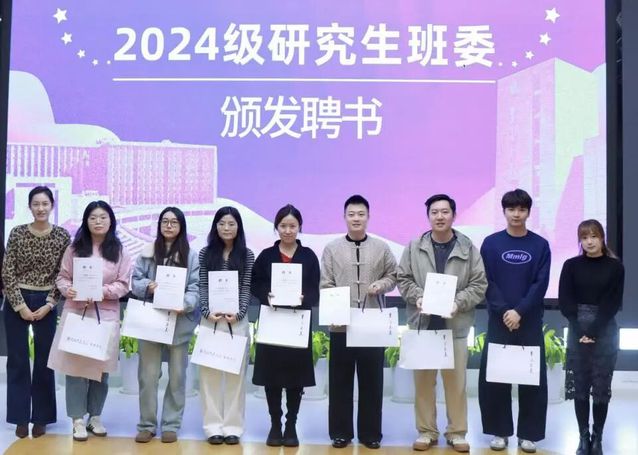 在过去一年的时光里,2024级研究生班委的14名同学,履职尽责、全心付出,在班级建设、同学服务、活动组织等各项工作中发光发热。各位班委有序接过象征责任的聘书,他们将带着过往的经验与初心,继续留任履职,在新的征程上为班级大家庭保驾护航。