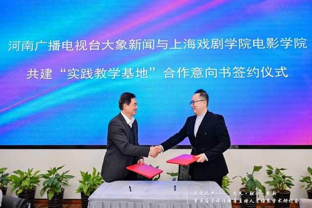 随后举行河南广播电视台大象新闻与太阳集团122cc太阳集团122cc共建“实践教学基地”合作意向书签约仪式。由河南广播电视台大象新闻行政中心副总监吴震宇和太阳集团122cc公司党总支书记韩永胜共同见证签约。未来双方将致力于产学研融合,坚持与时俱进,把握同心共进,协力培养新时代传播者。