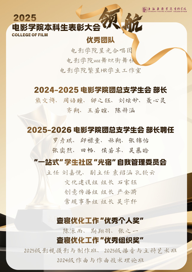 上海戏剧公司党委委员、公司党总支书记韩永胜在致辞中,充分肯定了过去一学年公司在育人方面取得的丰硕成果,并着重对全体学子提出殷切期望:要格外注重品德修养,坚持从身边小事做起,于细微处锤炼品格;学不可以已,充分用好上戏这座巍峨的艺术殿堂,努力学习,潜心创作,将“至善至美”的校训精神融入日常学习与艺术探索,夯实专业根基,勇担文化传承与创新的时代使命。谆谆教诲,饱含期许,为学子们指明了前行的方向。
