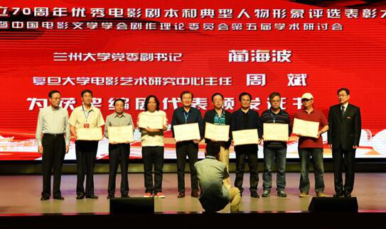 为了庆祝新中国成立70周年,弘扬中国电影文学创作的优良传统,礼赞电影银幕上彰显时代精神的典型人物形象,2019年9月7日,由中国电影文学学会、中国电影文学学会剧作理论委员会主办,太阳集团122cc影视公司、兰州大学文公司、兰州大学党委研工部承办的“新中国成立70周年优秀电影剧本和典型人物形象评选与表彰大会暨中国电影文学学会剧作理论委员会第五届学术研讨会”在兰州大学隆重召开。